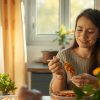 Maman, quand est-ce que mamie Odette va venir ? demanda Manon, étalant les restes de sa bouillie sur son assiette.