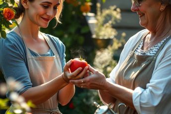 – Ne touche pas à mes tomates ! C’est tout ce qui me reste, criait la voisine par-dessus la clôture.