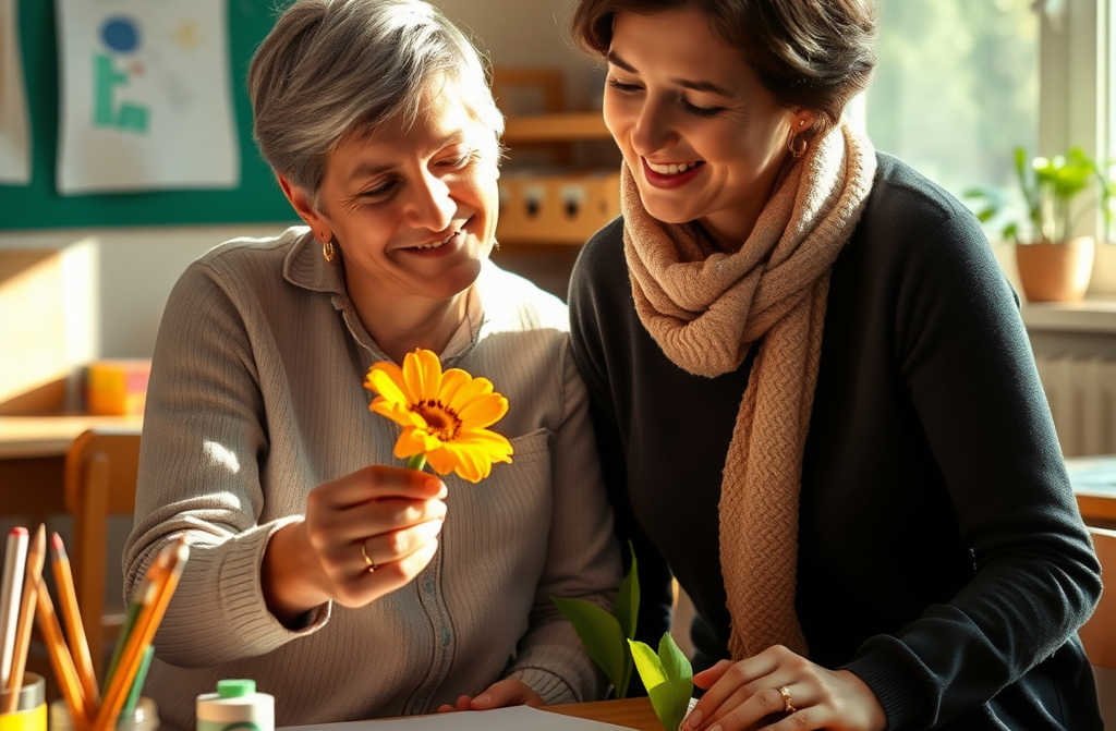 Ne force pas trop, mon chéri, sur le pinceau Comme ça, regarde : laisse-le glisser, léger, comme une plume sur ta paume. Voilà ! Parfait ! Ce nest plus une boucle, cest un chef-dœuvre ! sourit doucement linstitutrice aux cheveux gris. Et pour qui as-tu peint cette merveille ?