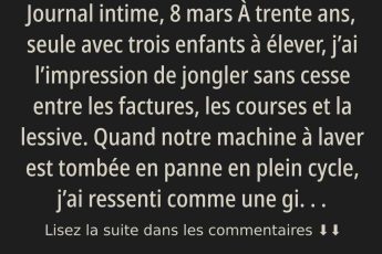 Journal intime, 8 mars À trente ans, seule avec trois enfants à élever, jai limpression de jongler sans