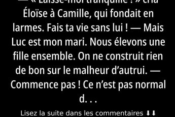 « Laisse-moi tranquille ! » cria Éloïse à Camille, qui fondait en larmes. Fais ta vie sans lui !